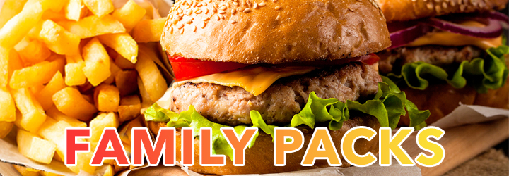 | 2 Reg. Burgers or 2 Chicken Burgers, 2 Fries and 2 Drinks, plus Choice of Onion Rings or Deep Fried Pickles | $ 25.95 |